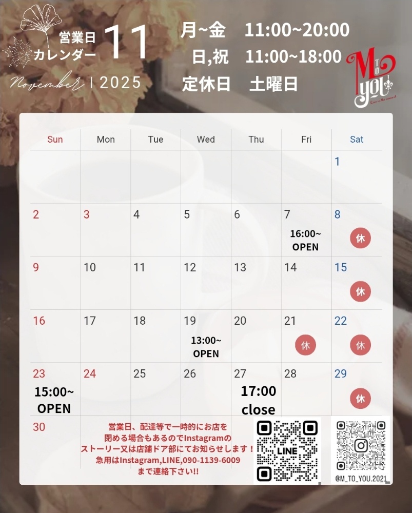 その際はInstagram又は店舗ドア部にてお知らせ致します。